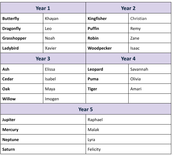 Councillors support, gather views and share work with year 6 MPs to make positive changes in the school have been selected for years 1-5. They are: