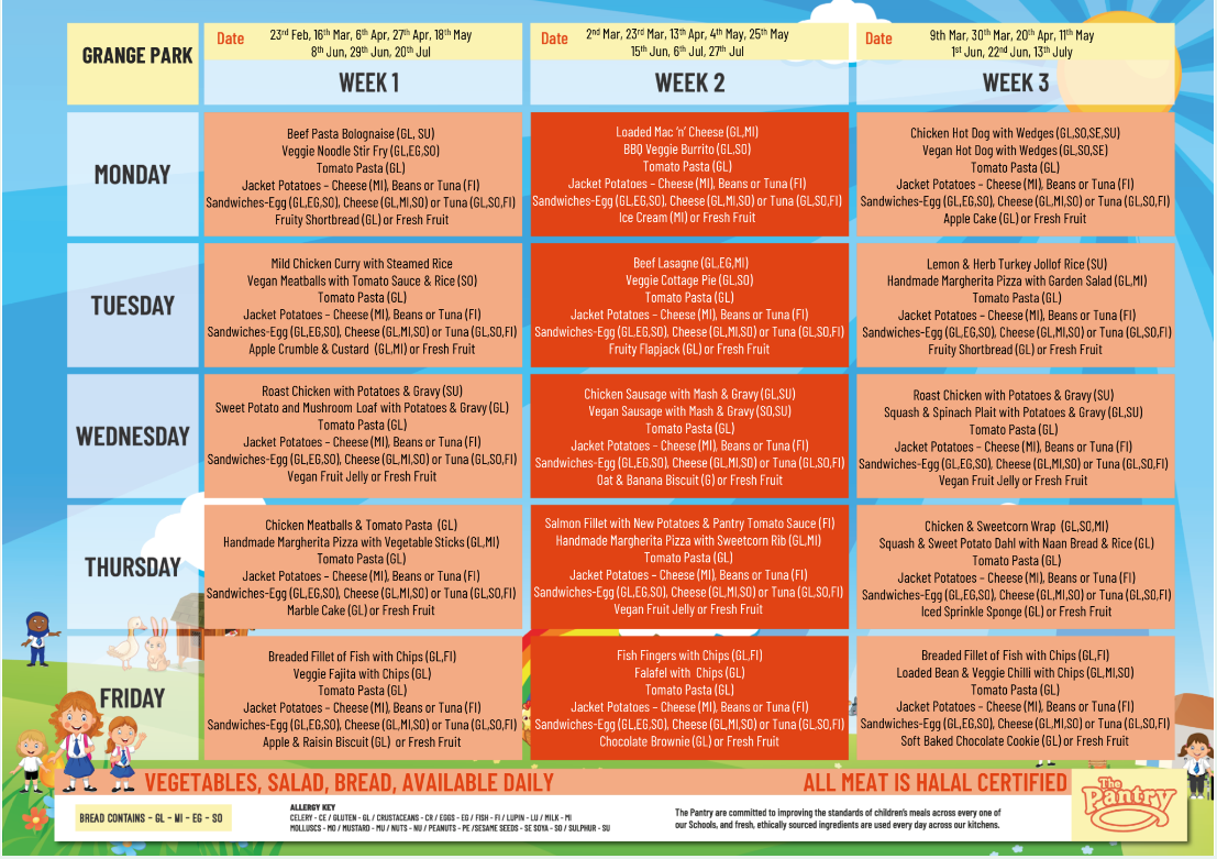 The traditional lunch menu brings children a range of exciting dishes that are varied and offers something for everyone. They provide the hearty, wholesome meals that your child desires. Orders need to be placed via The Pantry's website, you will find the menu there when you place an order.